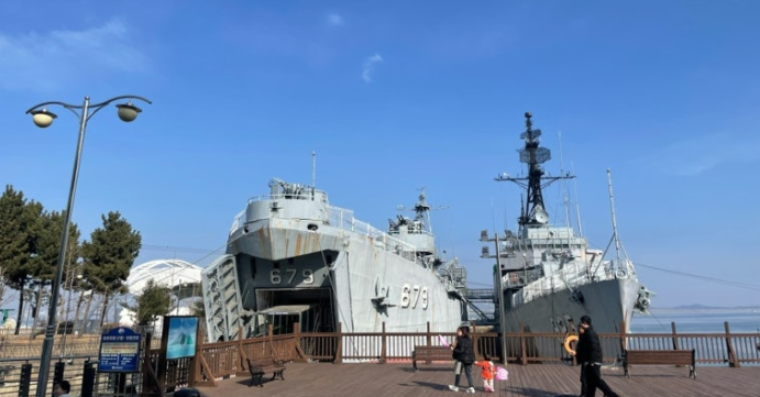 함상공원 바닷가쪽으로 오래된 진짜 배가 전시되어 있어요. 해군의 역사, 바다 위에서의 잊을 수 없는 전투, 그곳에서 나라르 위해 싸우고 전사하신 많은 군인분들을 애도하고 기억하는 사건들이 기록되어 있는 배 전시관입니다.