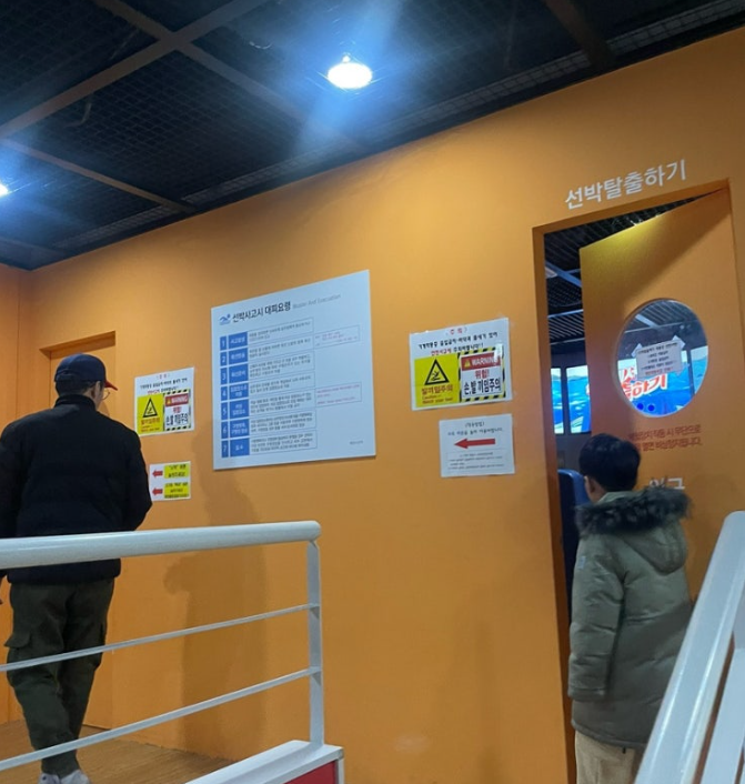 먼저 선박탈출 체험이에요. 입장 전 안내문을 읽고 들어갑니다.