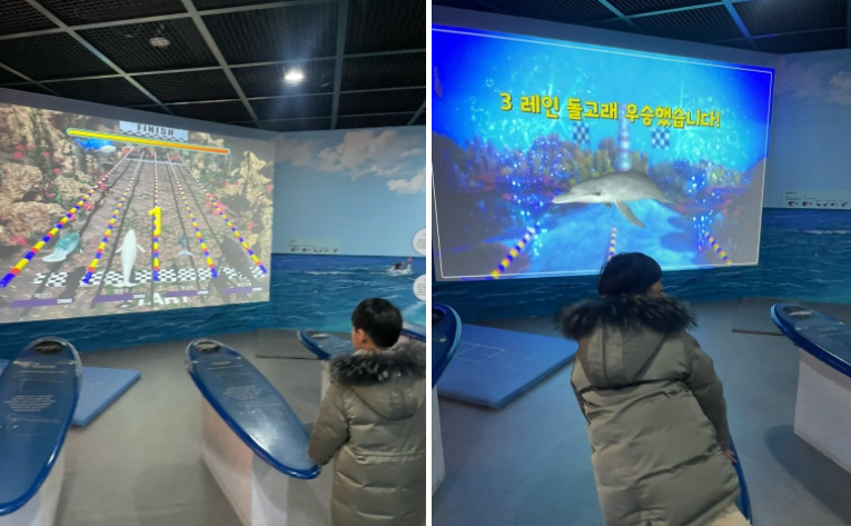 달리기 시합도 해볼 수 있어요 ㅎㅎ 신기하게도 팔을 확확 저으면 고래가 빨리 나가네요 ㅋㅋㅋ