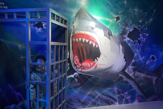 당진 삽교호 함상공원 체험관의 마지막 코스로 상어 케이지 탈출 체험이 있어요!