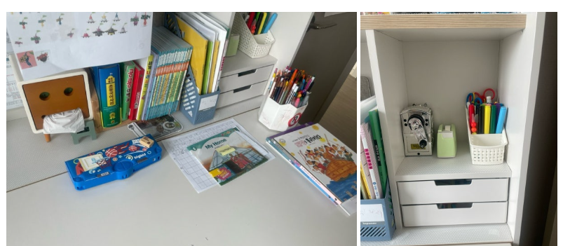 공책, 문제집, 학용품등 아이 물건도 책상에 가득 넣었어요~