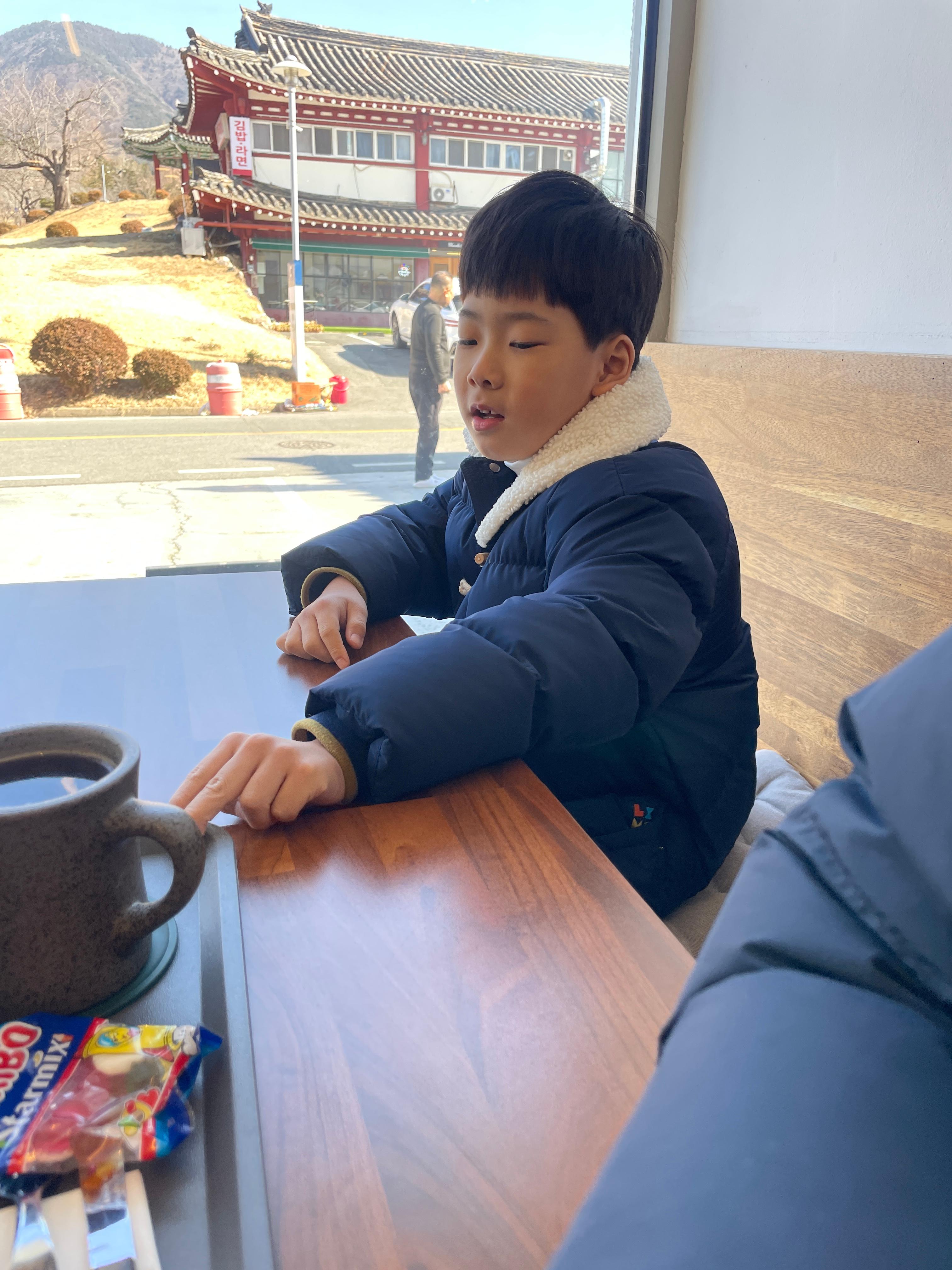 주말 일요일 불국사 역사여행인데 오전시간에 한산해서 카페 전세내듯 저희 가족이 이용을 했네요~