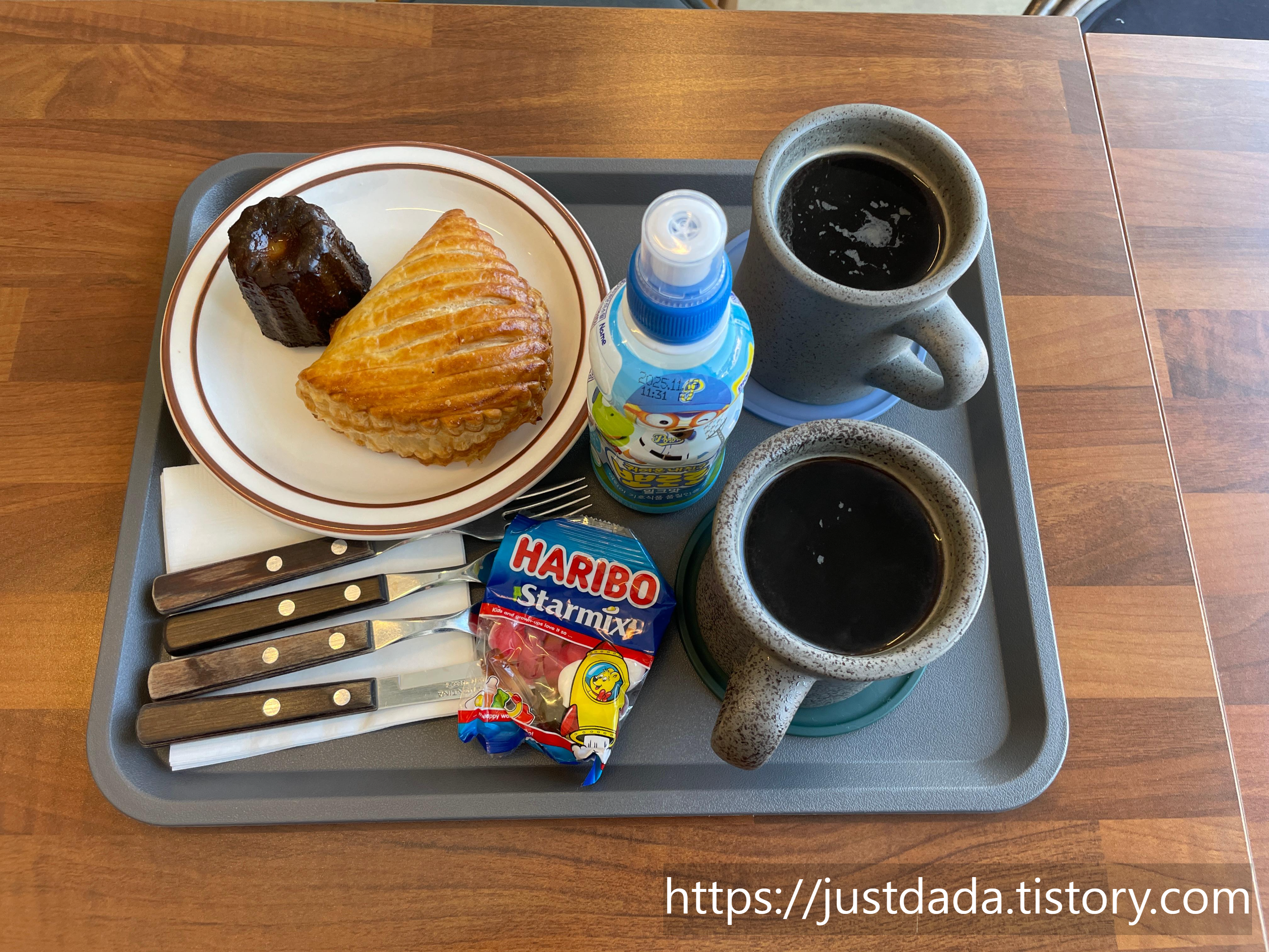 남편과 저는 따뜻한 카페 아메리카노 두 잔을 주문하고, 아이가 마실 어린이음료와 간단한 베이커리를 주문했어요.