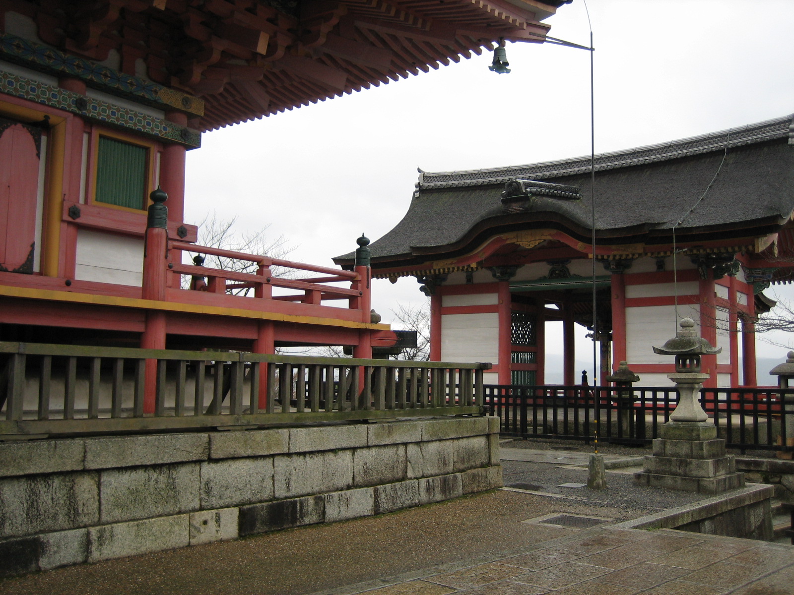 기요미즈데라의 상징은 본당 앞 13m 높이의 목조 무대야. 기둥 하나 없이 끌어올린 이 구조물은 돗토쿠(鳴滝式) 방식으로 지어졌으며, 무대 위에서 교토 시내 전경을 바라볼 수 있습니다.