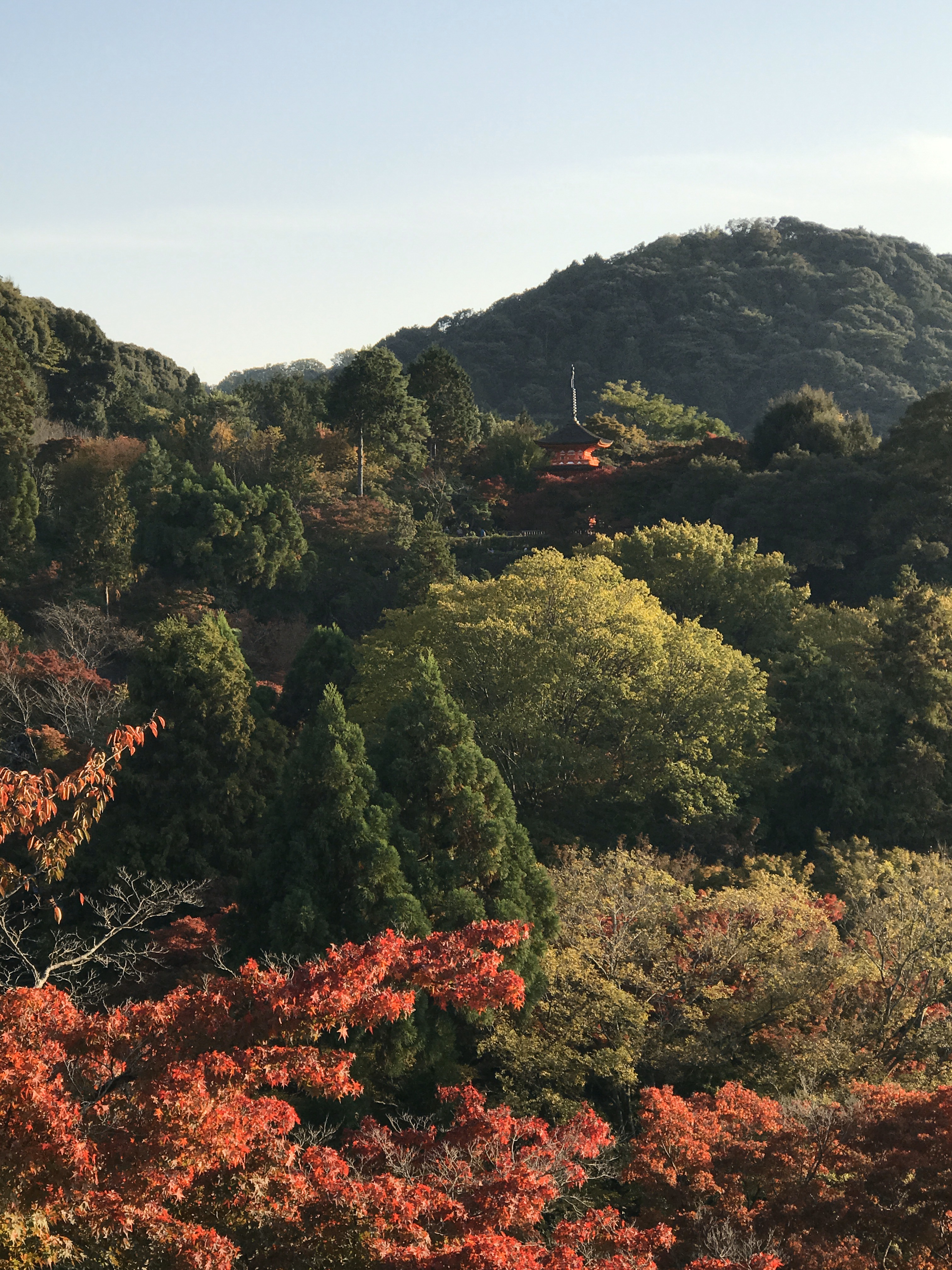 울긋불긋 주변 분위기를 더 고풍스럽게 만들어주는 청수사의 단풍진 모습이에요~