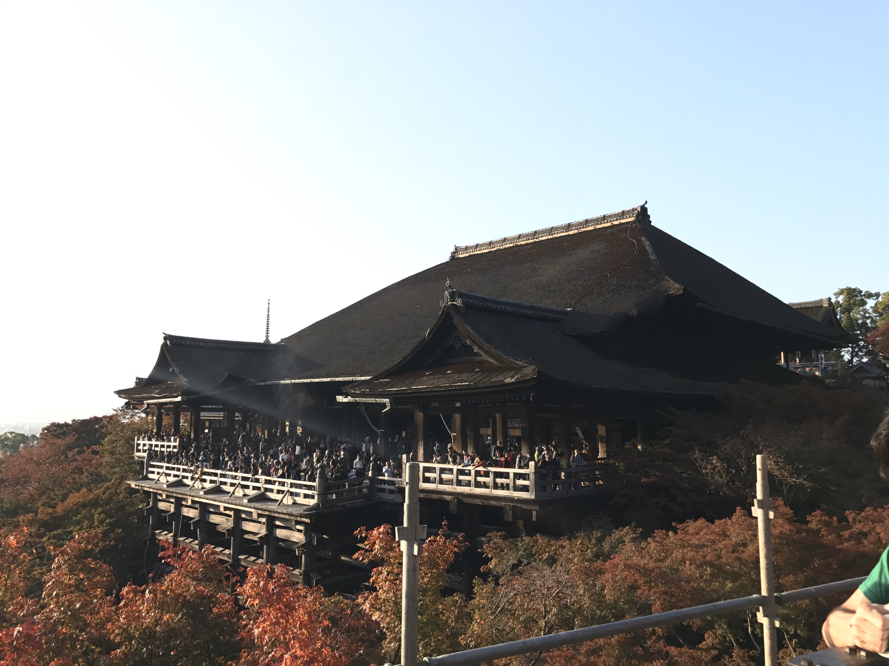 본당 맞은편에서 바라본 청수사의 메인 장소입니다. 높은 산 위에 우뚝 지어진 목조건물입니다.