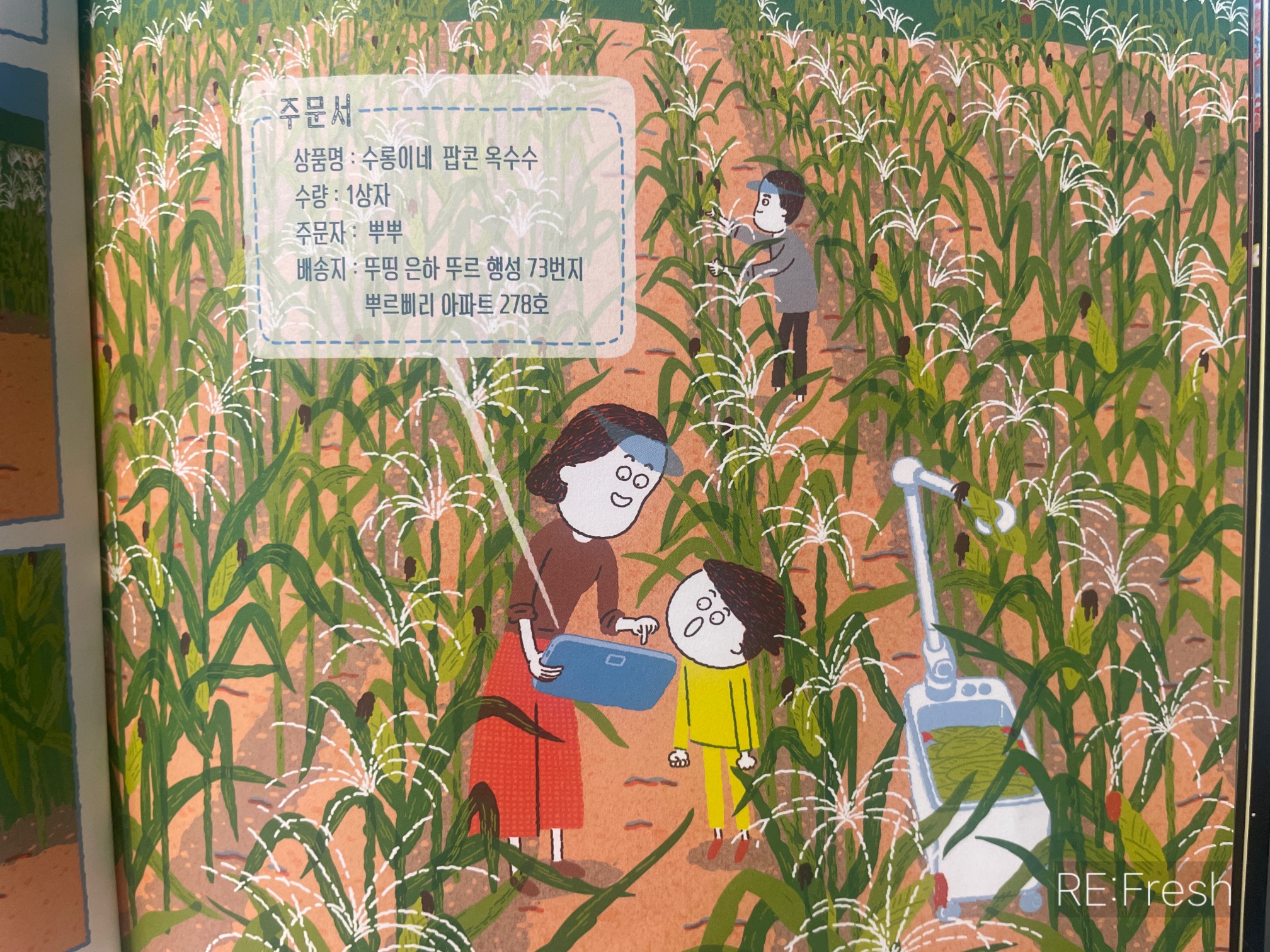 수롱이네 옥수수 파격특가! 그림책 맨 앞 표지를 다시 보았어요.