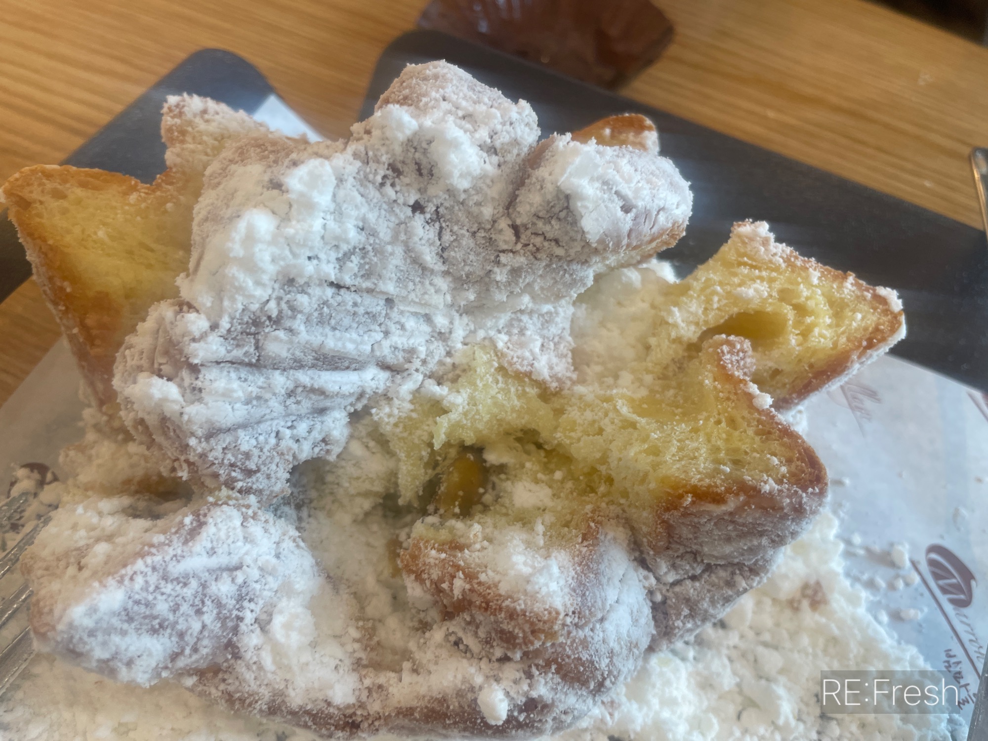 밤팡도르는 부드러운 슈가파우더가 감싸고 있어서 입안에서 사르륵 녹아내리는 부드러운 빵이에요. 안에 역시나 밤이 촘촘하게 박혀 있어요.