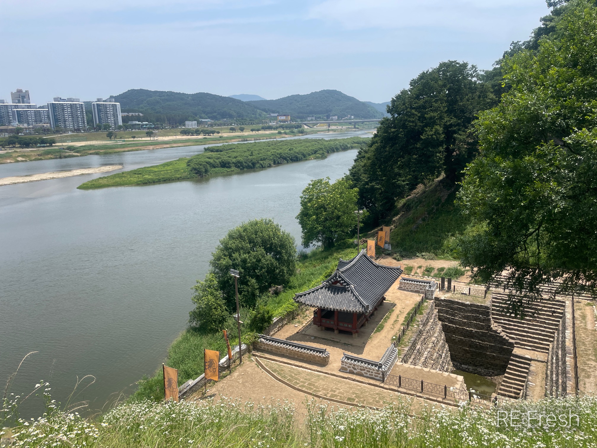 당시 백제시대에 연못이 있었던 곳인데요. 깊이가 상당해요. 밖으로는 금강이 쭉 펼쳐지고 경치가 탁 틔여서 좋네요.