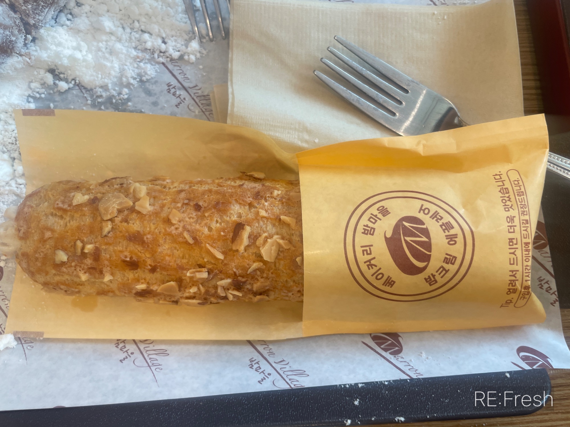 베이커리 밤마을에서 밤파이 말고도 다양한 빵이 있어요. 밤에끌레어는 길죽한 호두방망이 스카일인데요.