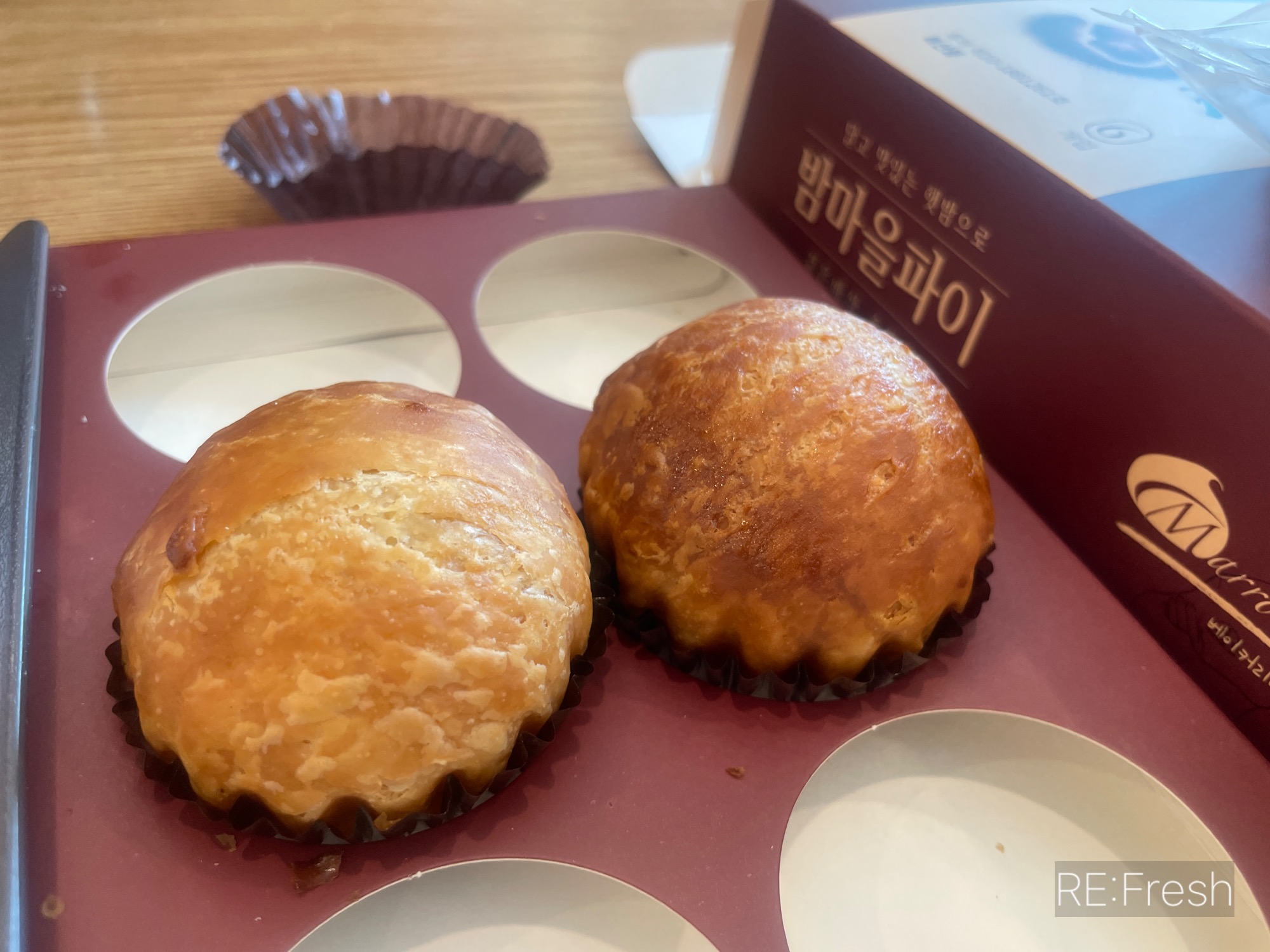 밤파이는 밤이 크게 하나씩 들어가고 바로 만들어져 따뜻하고 부드러운 맛으로 유명하더라구요.