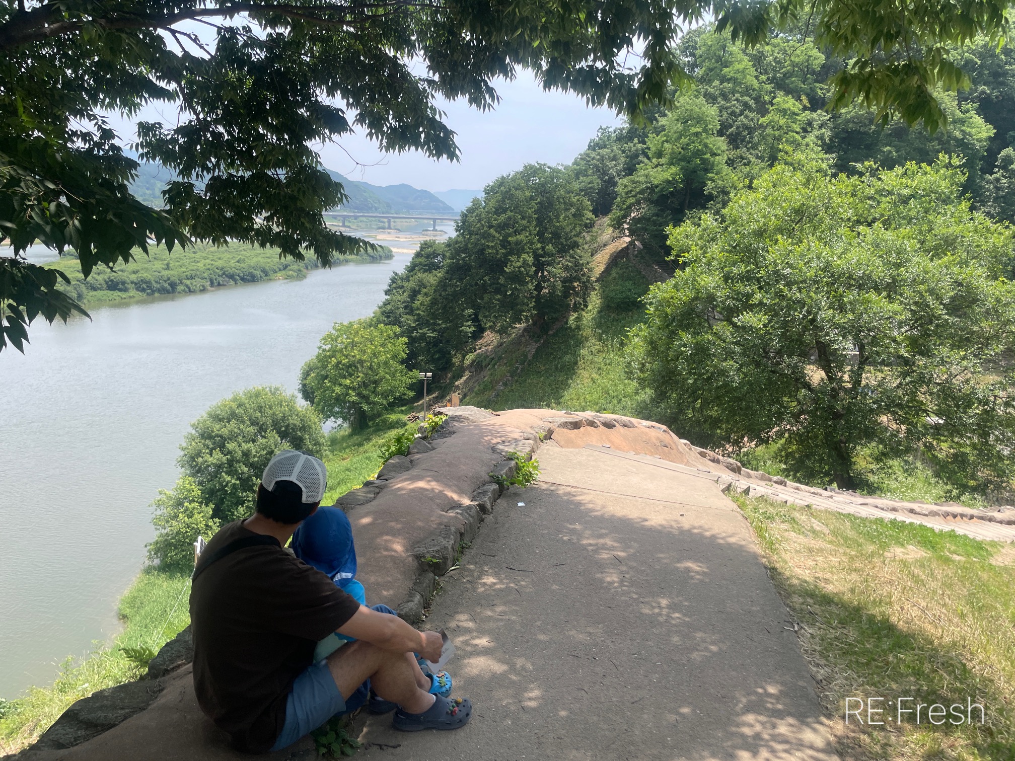 정자 위에 올르면 전망대처럼 공산성 아래와 금강 줄기가 내려다 보여요. 탁 트인 높은 곳에서 바람이 시원하게 불어오네요~