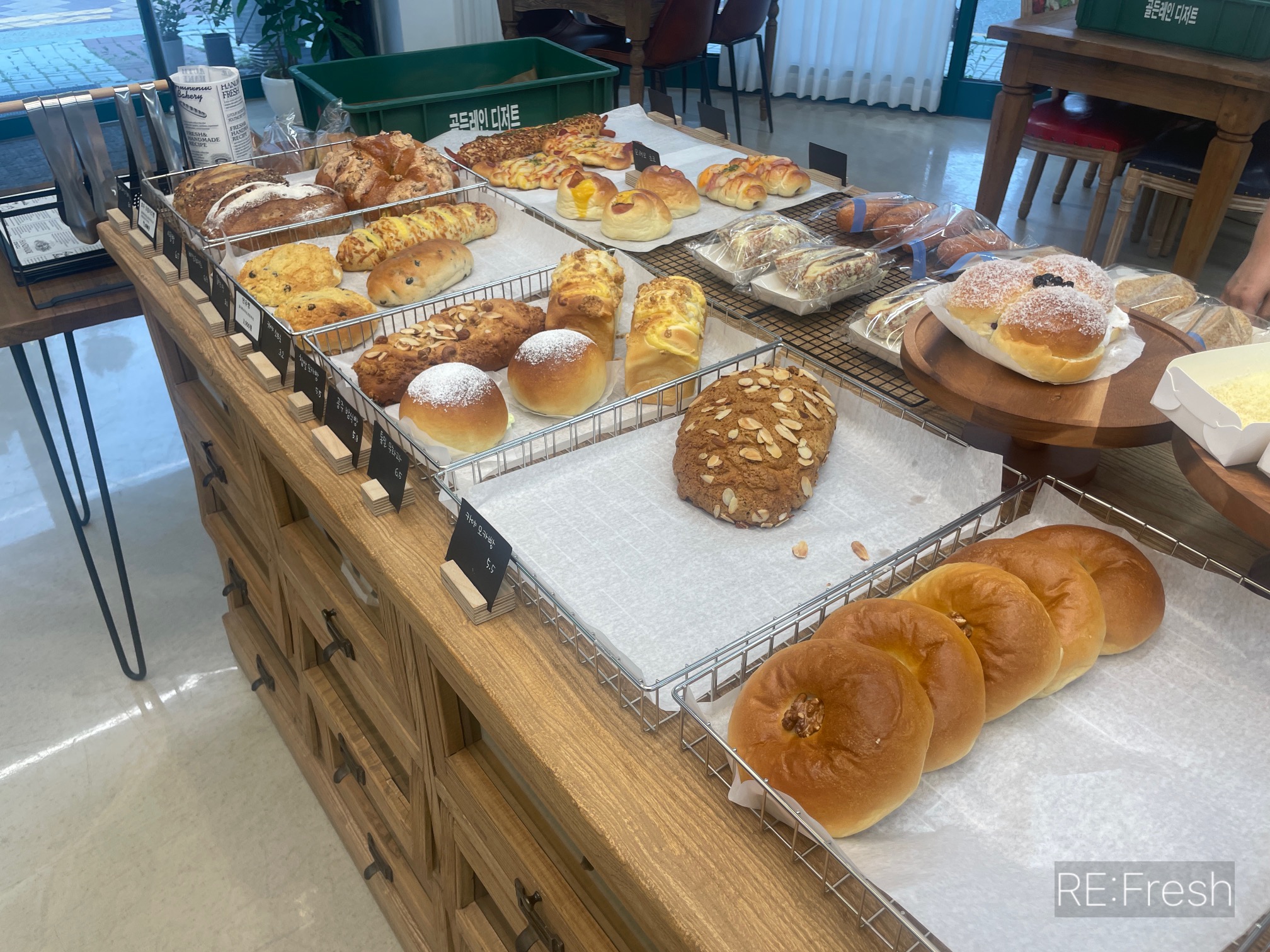 빵은 거의 다 만들어져 채워져 있긴 하구요. 단골손님으로 보이는 익숙하게 커피드시던 분도 계셨고 제가 들어가서 빵을 고르는데 손님들이 계속 들어오더라구요.