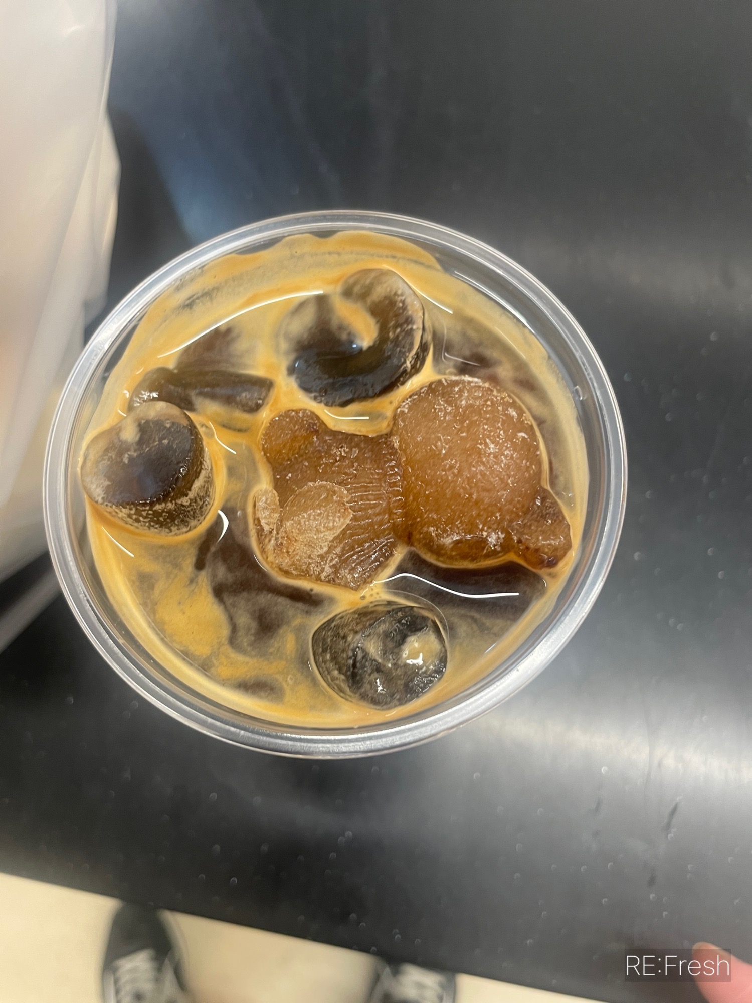 몇가지 빵 고르고 포장 대기 하는 사이 먼저 주문한 아메리카노가 나왔어요. 카페 리뷰에서 봤던 곰돌이 커피 얼음이 들어 있었어요 ㅎㅎ 귀요미 둥글둥글 커피 속에서 사르르 녹고 있네요~ 휘휘 저으니 춤 추는 것처럼 덩실덩실한 느낌이에요 ><