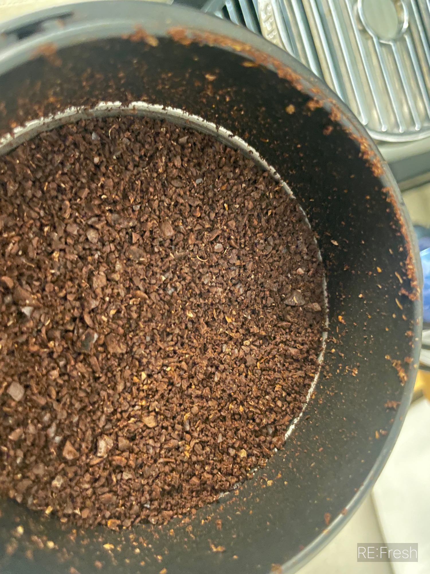 슈가 브라우닝 고소한맛 원두 - 전동 그라인더에 갈갈 했어요. 따뜻한 커피 내리는 분량으로 23g 양 맞춰서 올렸지요.