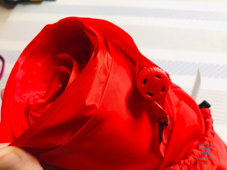 바람빼기 구멍 열고 둘둘 말면서 한번씩 무릎으로 눌러주니 바람이 쉽게 잘 빠지네요~