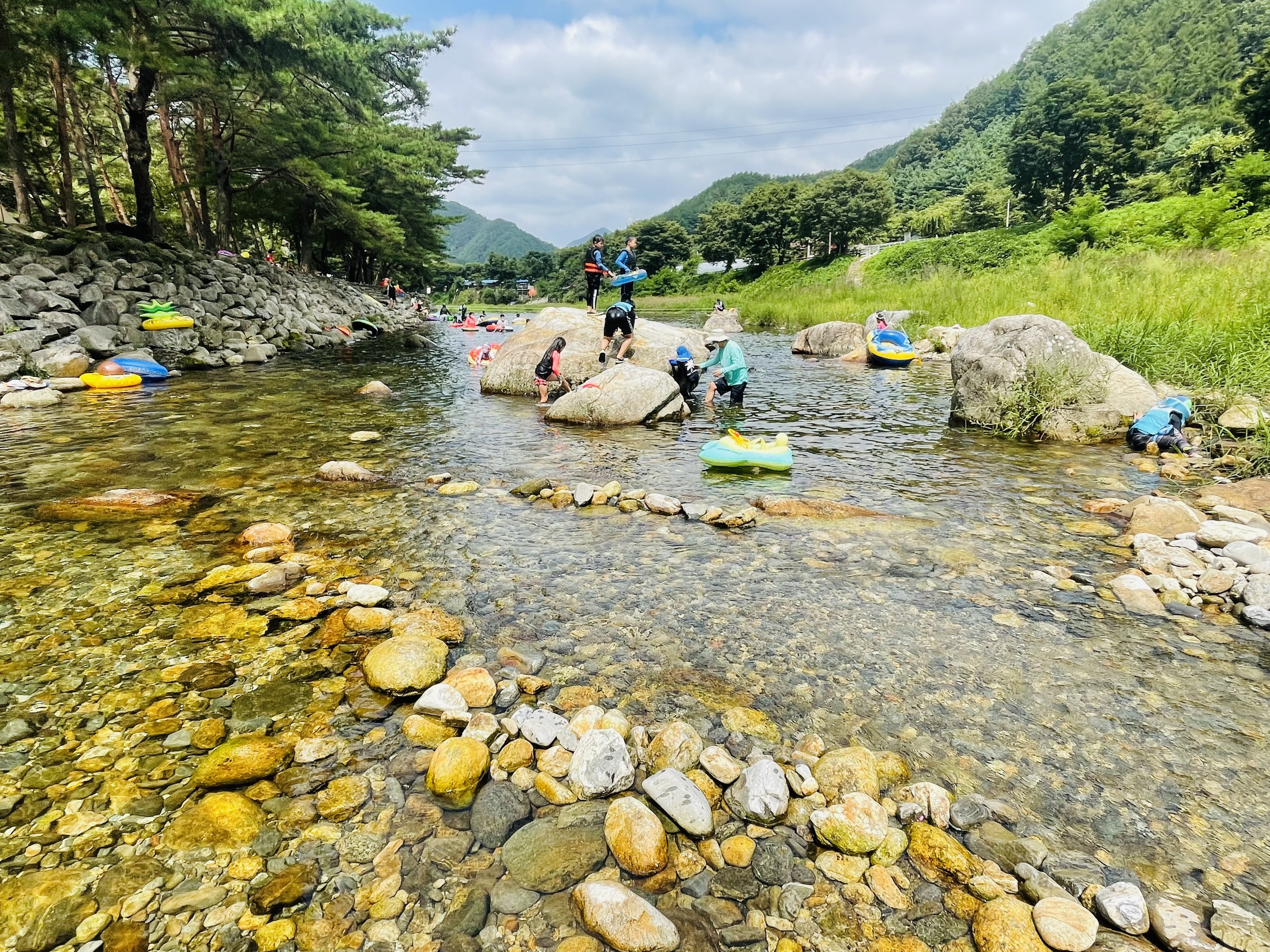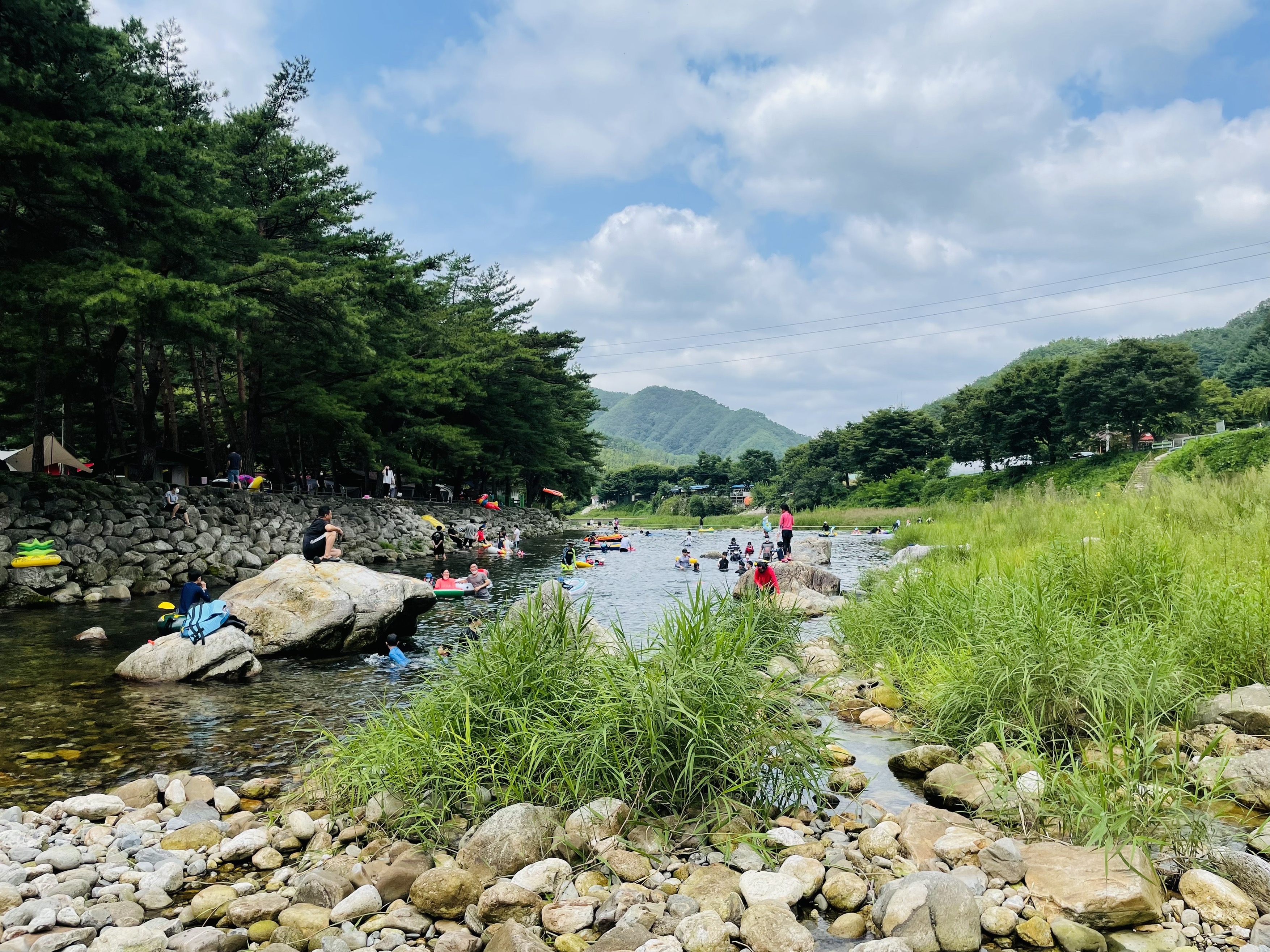 강원도 영원 가족여행에 좋은 캠핑장 추천합니다. 계곡 물놀이 좋고, 계곡이 넓어서 큰 튜브도 ok!