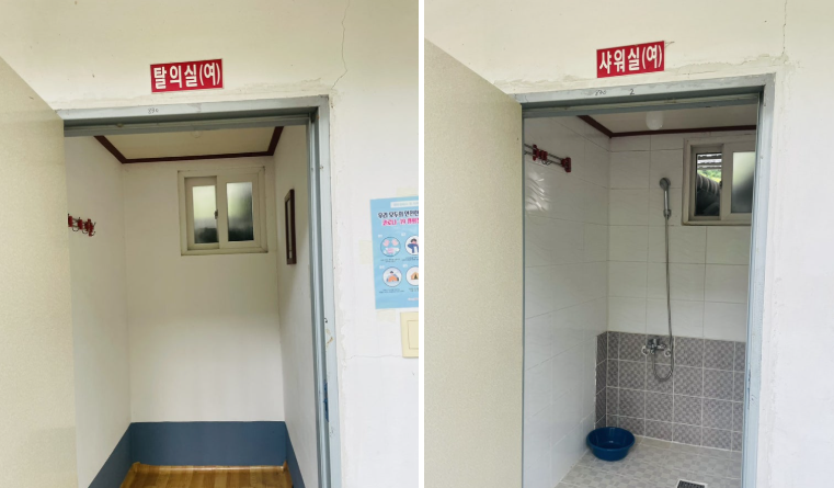 위 사진 왼쪽 시설이 남자 / 여자 각 탈의실, 샤워실 시설입니다.
